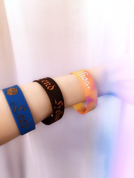 ①ピンク・紫・黄色の3色マーブルに白のロゴ入り(マーブルのみ800円)